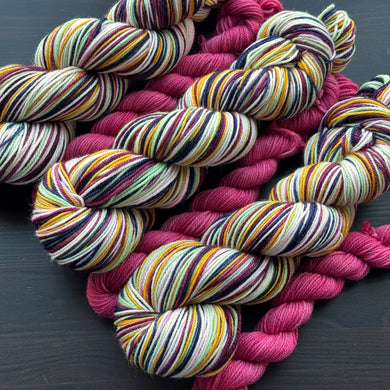 Each month, I have a new self striping colourway inspired by a new book release coming out that month. This is something new to 2025 as my love of books continues to grow! These are available on a dyed to order basis.