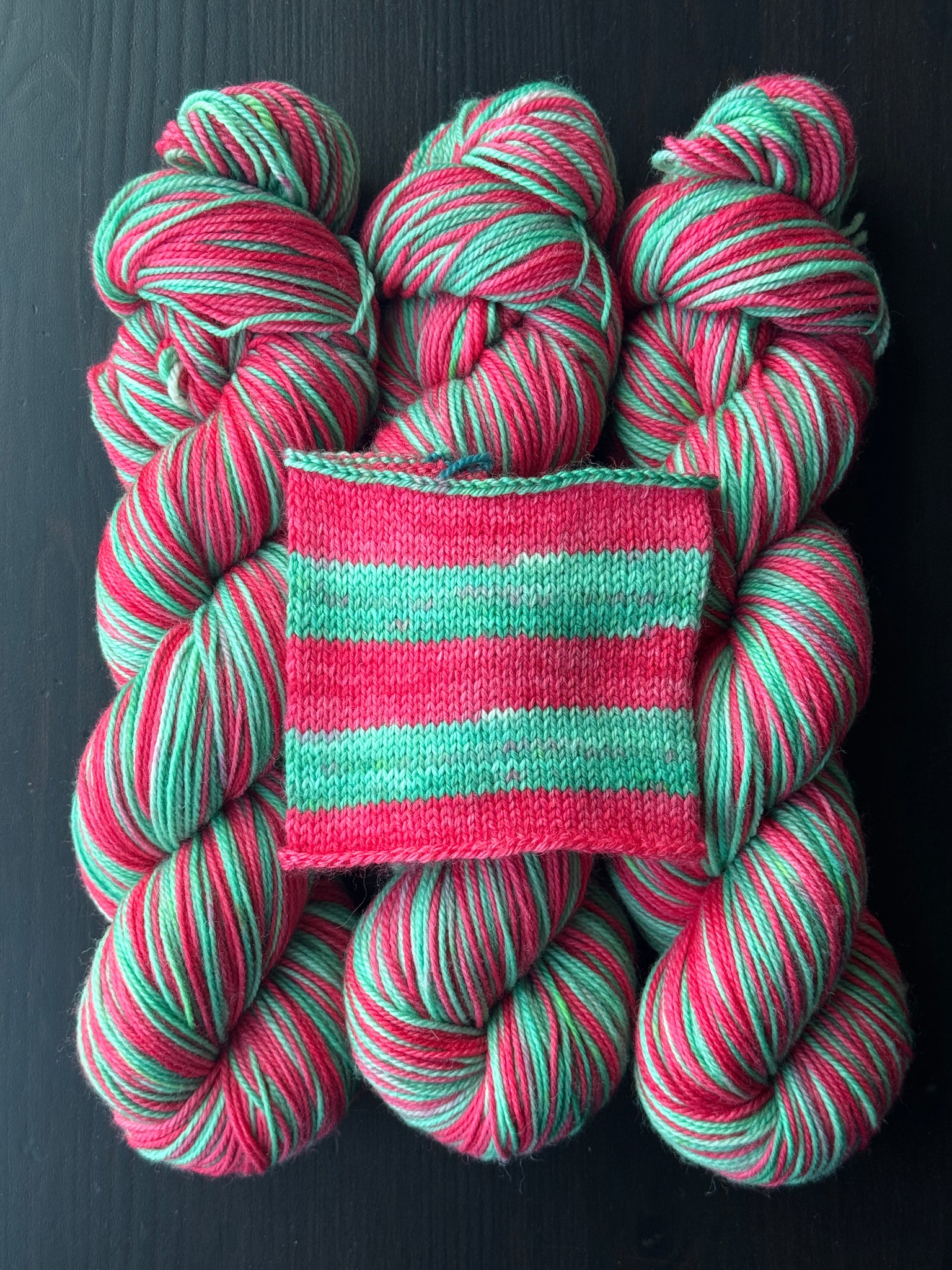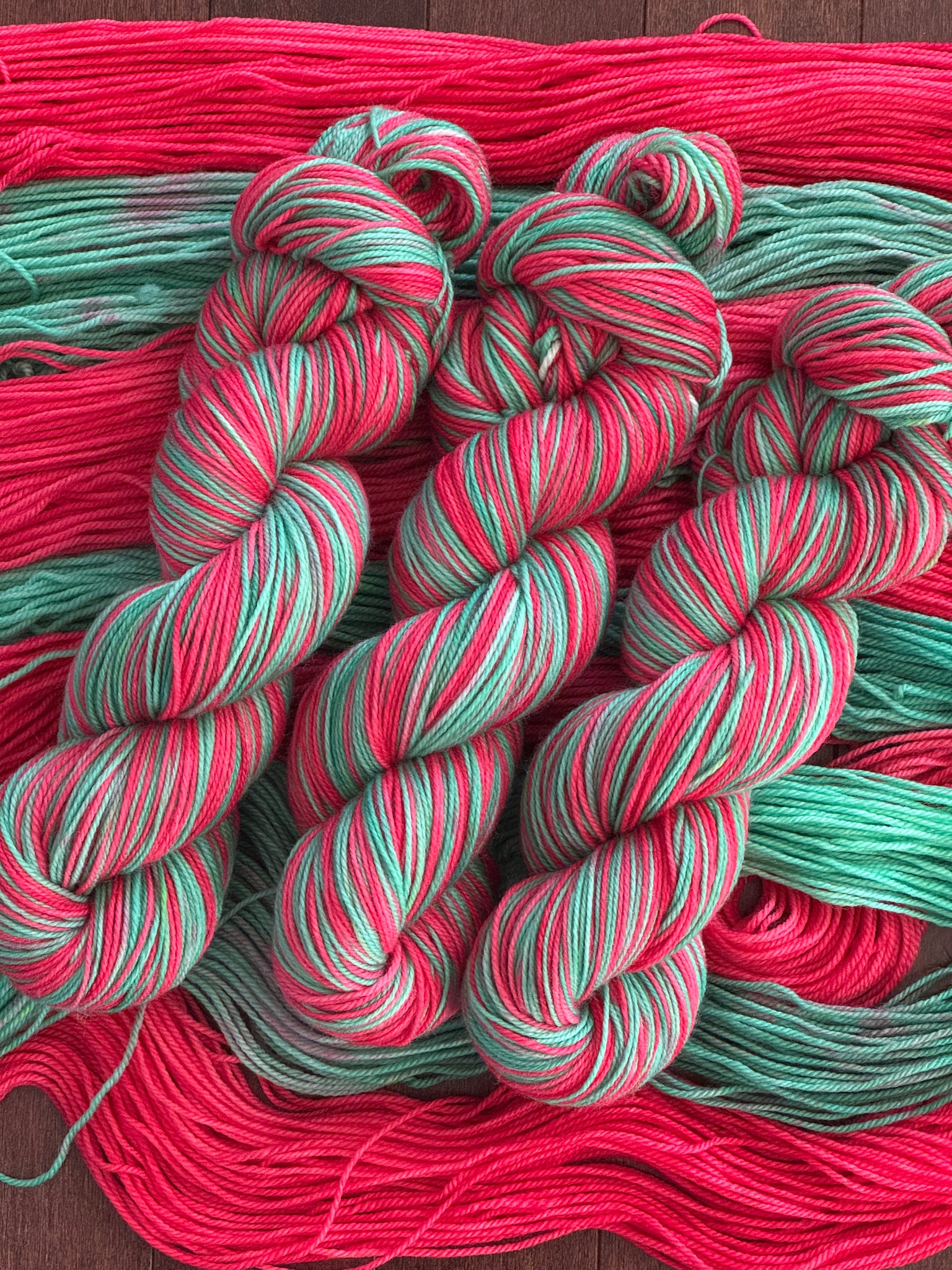 80% Superwash Merino, 20% Nylon, approximately 420 yards, 3-ply, 115 grams, fingering weight