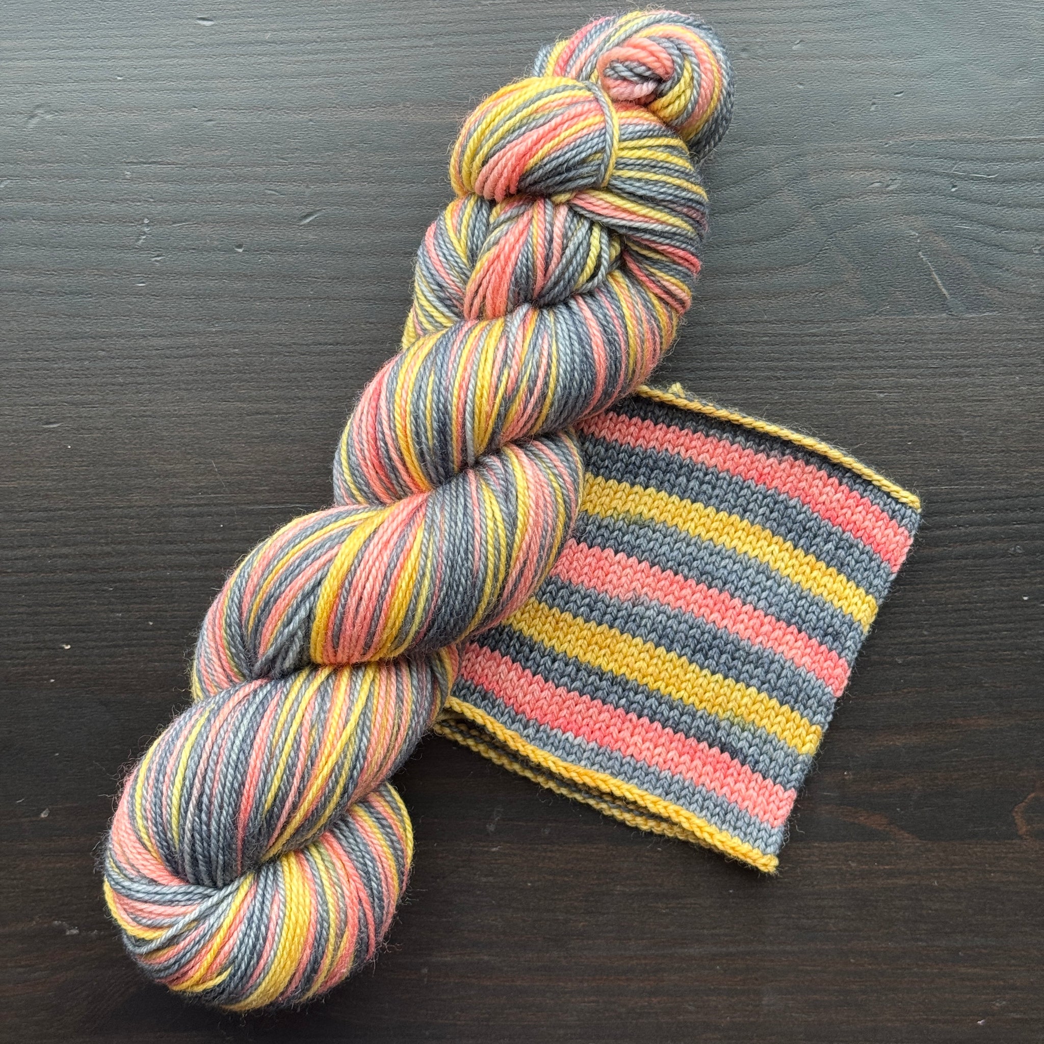 80% Superwash Merino, 20% Nylon, approximately, 420 yards, 3-ply, 115 grams, fingering (sock) weight
